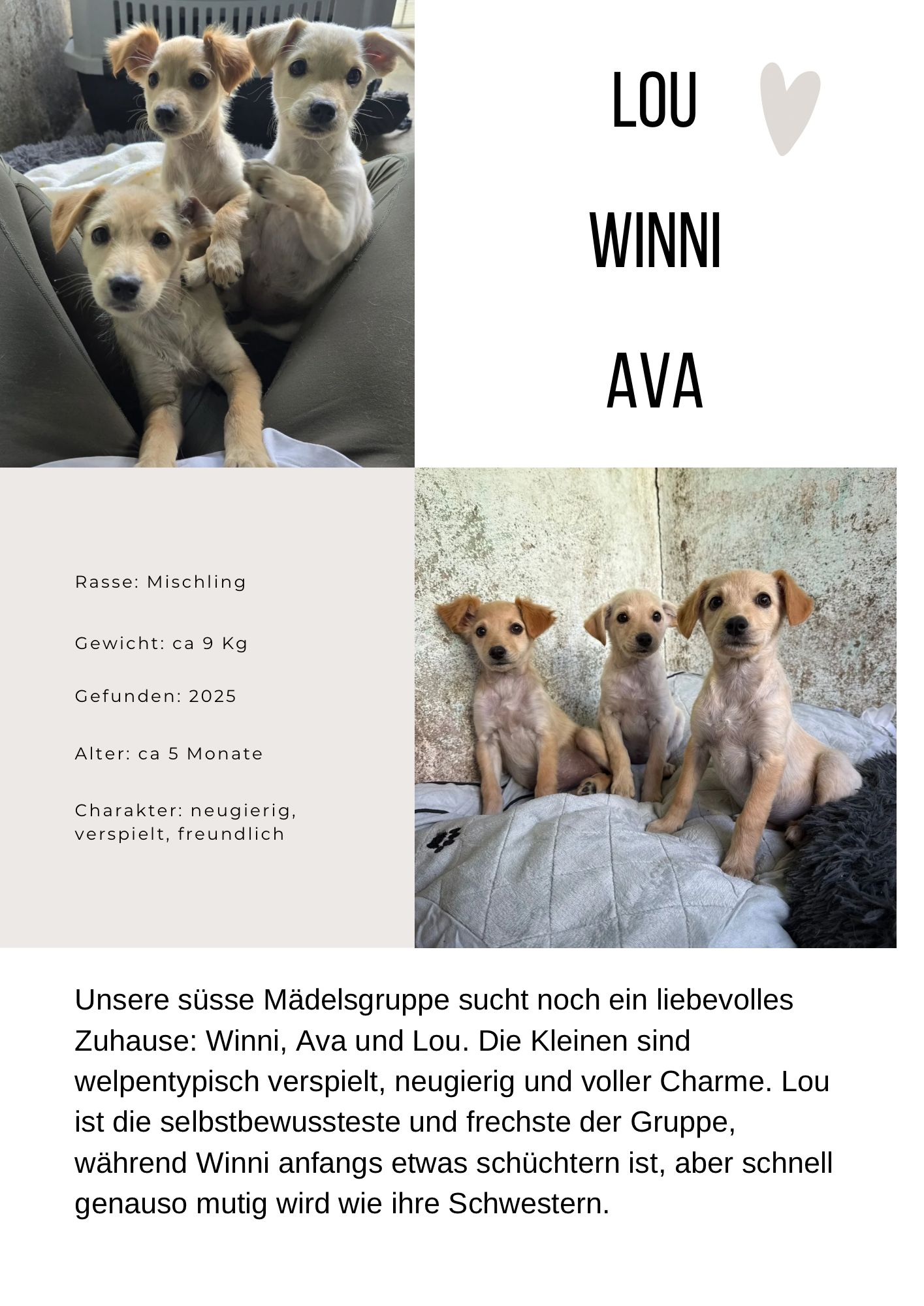 Lou Winni und Ava suchen ein Zuhause 🐾